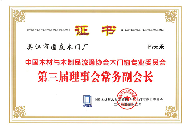 中國材與木制品流通協(xié)會木門窗專業(yè)委員會第三屆理表會常務(wù)副會長