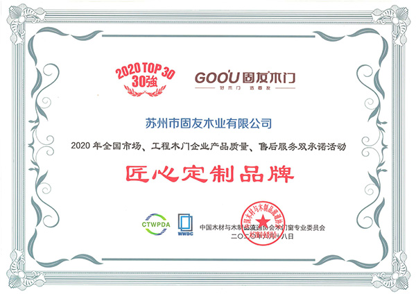 2020產(chǎn)品質(zhì)量、售后服務(wù)雙承諾匠心定制品牌